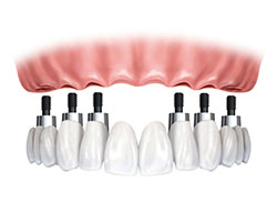 All-on dental implants, the treatments use a minimum number ofimplants to support a maximum number of teeth. It means that four or siximplants can be use tosupport afull arch replacement teeth. The best part about this solution is that it can be done in a single day. This treatment involves drilling the jawbone to embedded 4 or 6 implant. The new replacement teeth areplaced and adjusted to get a proper bite. The entire process is less invasive and does not take a lot of time . After about six months ,the implants will completely fused to your natural bone